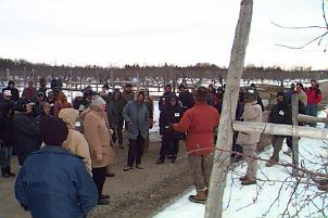 | Final stop was Chudleigh Orchards in Milton where we were first treated to Chudleigh's award-winning apple pastry and hot coffee before venturing into Tom's pride and joy pick-your-own orchard. Tom plants only M.9 trees now, fumigates, and fertilizes three times in the first year to achieve 24-30" shoot growth. Chudleigh's is within an hour from most of metropolitan Toronto, Canada's largest city. | ![]() |