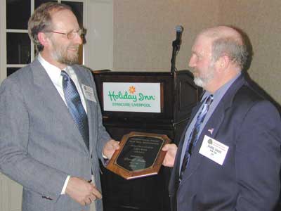 Kent Waliser (left) presents Darrel Oakes with his reward. Kent served