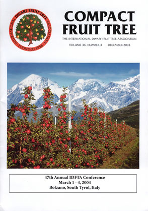 Index of Compact Fruit TreeVol. 36, No. 3 - December 2003Table of Contents66 Program 47th Annual Conference International Dwarf Fruit Tree Association 69 Conference Tour Registration Form 70 On-Farm Trials of the Cornell-Geneva Apple Rootstocks in New York T. Robinson, S. Hoying, M. Fargione, and K. Iungerman 74 Major Trends in U.S. and World Apple Markets D. O'Rourke 79 Managing Growth, Fruiting, and Fruit Quality in Washington with Bioregulators D. Elfving and D. Visser 81 Apple Cultivars: A Geneva Perspective S. Brown and K. Maloney 85 Organic Tree Fruit Production, Promise and Pitfalls D. Granatstein 87 SJP84 Winter Hardy Dwarfing Apple Rootstocks from Agriculture and Agri-food Canada Breeding Program S. Khanizadeh, Y. Groleau, R. Granger, G. Rousselle, and C. Davidson Compact Fruit Tree, the Journal of the International Dwarf Fruit Tree Association (IDFTA), is devoted to the publication of technical information for growers of deciduous tree fruits. It is published in April, August, and December by IDFTA (Charles Ax, Business Office, 14 S. Main St., Middleburg PA 17842 USA; Phone 570-837-1551; FAX 570-837-0090). To receive three issues per year of Compact Fruit Tree, payment of the IDFTA membership fee of $85 per year should be sent to the above address and made payable in US dollars to IDFTA, or Join IDFTA here. Copyright©2003 International Dwarf Fruit Tree Association. No endorsement by IDFTA of products named in articles is intended. The views expressed in the articles are those of the author(s) and do not necessarily reflect the views of IDFTA. |